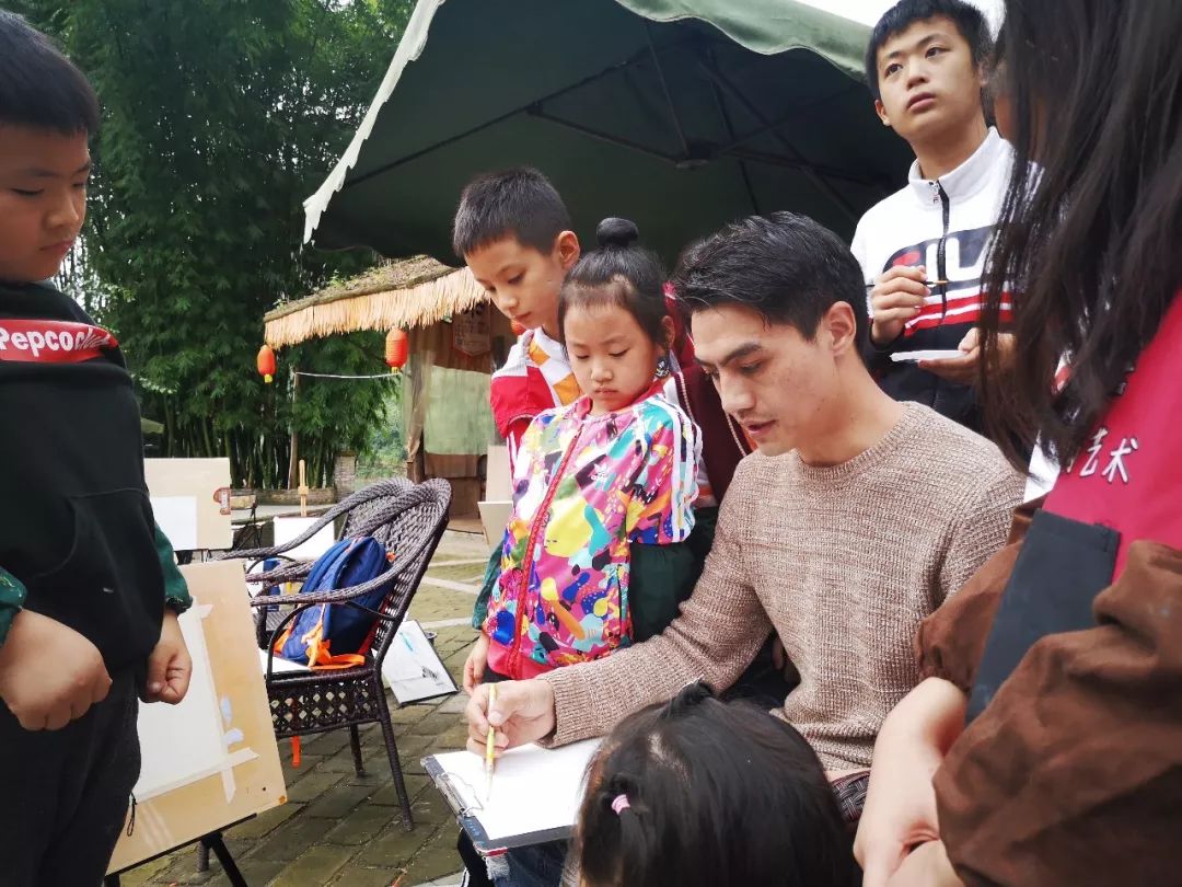 老师分别为孩子们做着范画,耐心的指导,他们就是新场的一道风景......