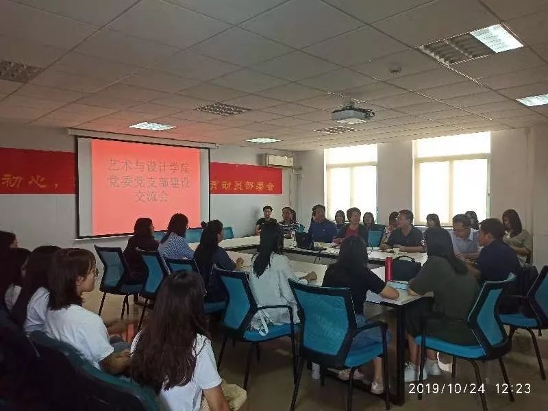 10月24日,为深入推进“不忘初心,牢记使命”主题教育向党支部纵向延伸,充分发挥党支部的战斗堡垒作用和党员的先锋模范作用,艺术与设计学院党委在综合楼901会议室举行党支部建设交流会。学校党委组织部委派组织建设科郭向阳科长莅临指导,学院党委彭翠峰书记、杜肇铭院长、李愿方副书记,各党支部委员,全体学生党员参加了交流会。