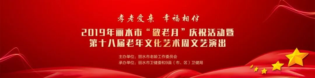 由丽水市老龄工作委员会主办丽水市卫生健康委、9县(市、区)卫生健康局承办主题为“孝老爱亲、幸福相伴”的2019年敬老月晩会暨第十八届老年文化艺术周文艺演出明晚将在丽水市广播电视总台文化休闲频道播出节目分古·寻根、红·铸魂、绿·圆梦三个篇章值得一提的是这次演出团队平均年龄55岁