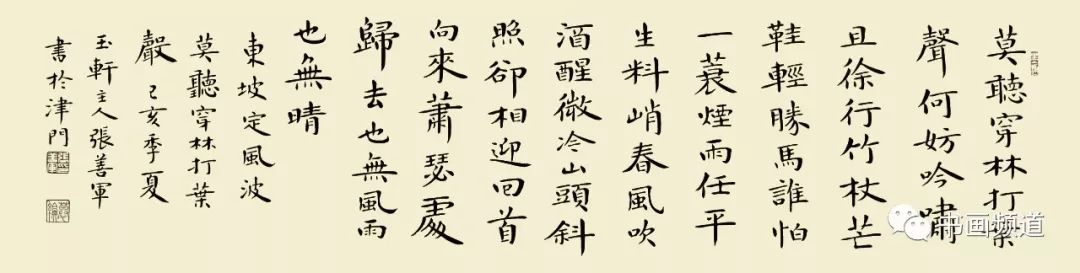 先后得书坛名宿孙其峰、宁书纶、赵伯光、王家新等诸先生耳提面命。张善军是一个取法传统而不固步自封、充满活力的青年才俊,也是一位把心灵浸淫在文化艺术里的虔诚书家,专注于研究名家法帖,终以意韵为追求之主导,典雅之气油然而出。