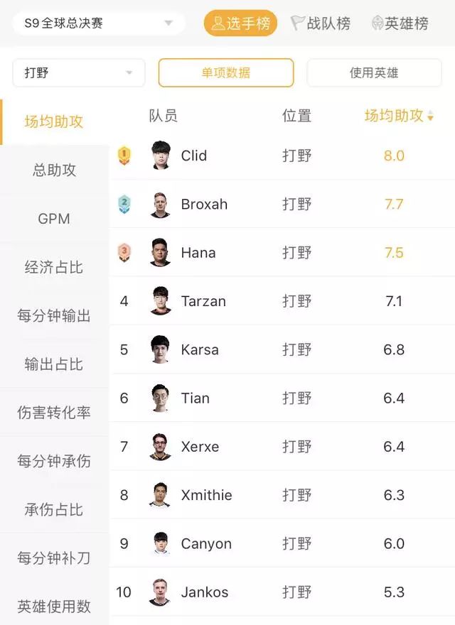 不过如果因为输出占比不高而小看Broxah是会吃苦头的,他花了更多的时间控图,而在场均助攻方面Broxah排名S9打野第二位,比Tian高出1.3。盲僧作为双方的招牌英雄,应该会得到双方的重视,拿到盲僧的Broxah还是不容小觑。