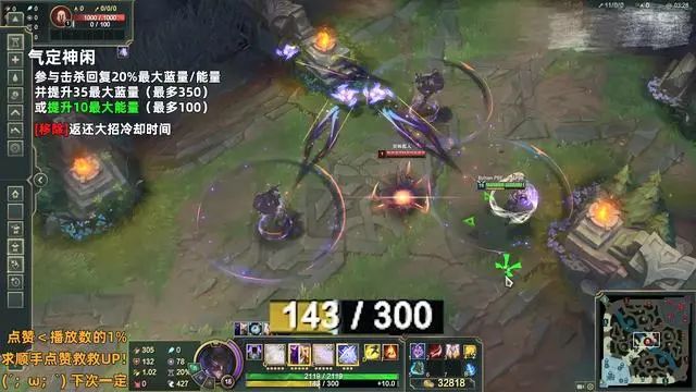 在达到最大的叠加效果之后,佩戴气定神闲这个天赋的劫,可以拥有一个300能量值的能量条,这代表他的一套连招中可以多加一个qe技能了,这对于ad玩家来说真是一个毁灭性的打击,一个发育良好的劫,一个qe连招就有可能让一个ad原地蒸发了...