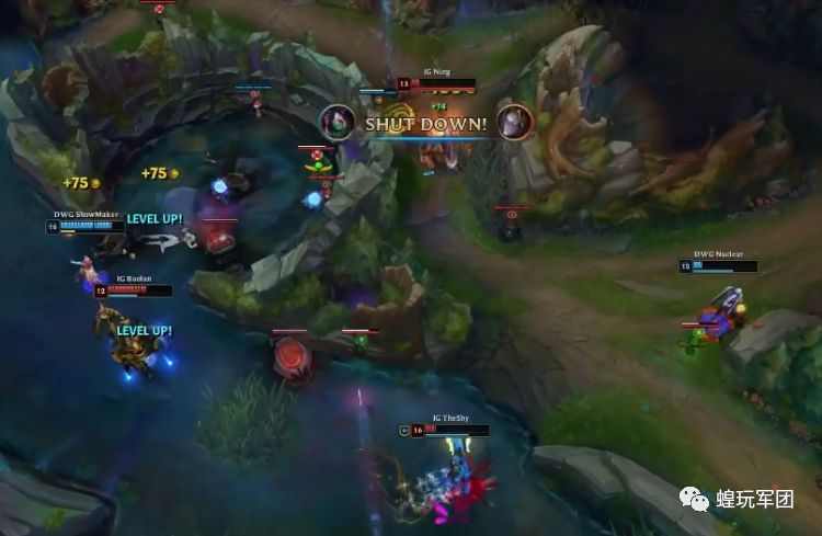 DWG.ShowMaker:同样作为中单位的ShowMaker,被许多网友评价为“DWG的真大腿”。有网友调侃说,其实Nuguri只是DWG放出来的诱饵。通过迫使敌方把注意力放在上单身上这样的方法,让ShowMaker发育起来接管比赛。比如小组赛上的阿卡丽,就是在IG强行越上路塔时,及时赶到冷静收下三杀。