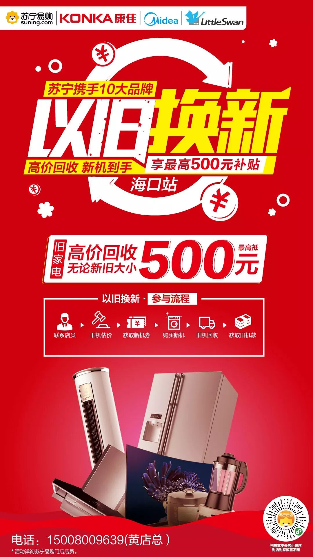 10月25日-10月27日,吾悦广场以旧换新嘉年华专场活动。消费者家中只要有旧家电,无论大小新旧均可到苏宁进行系统评估,购买新机可享受最高补贴500元的福利