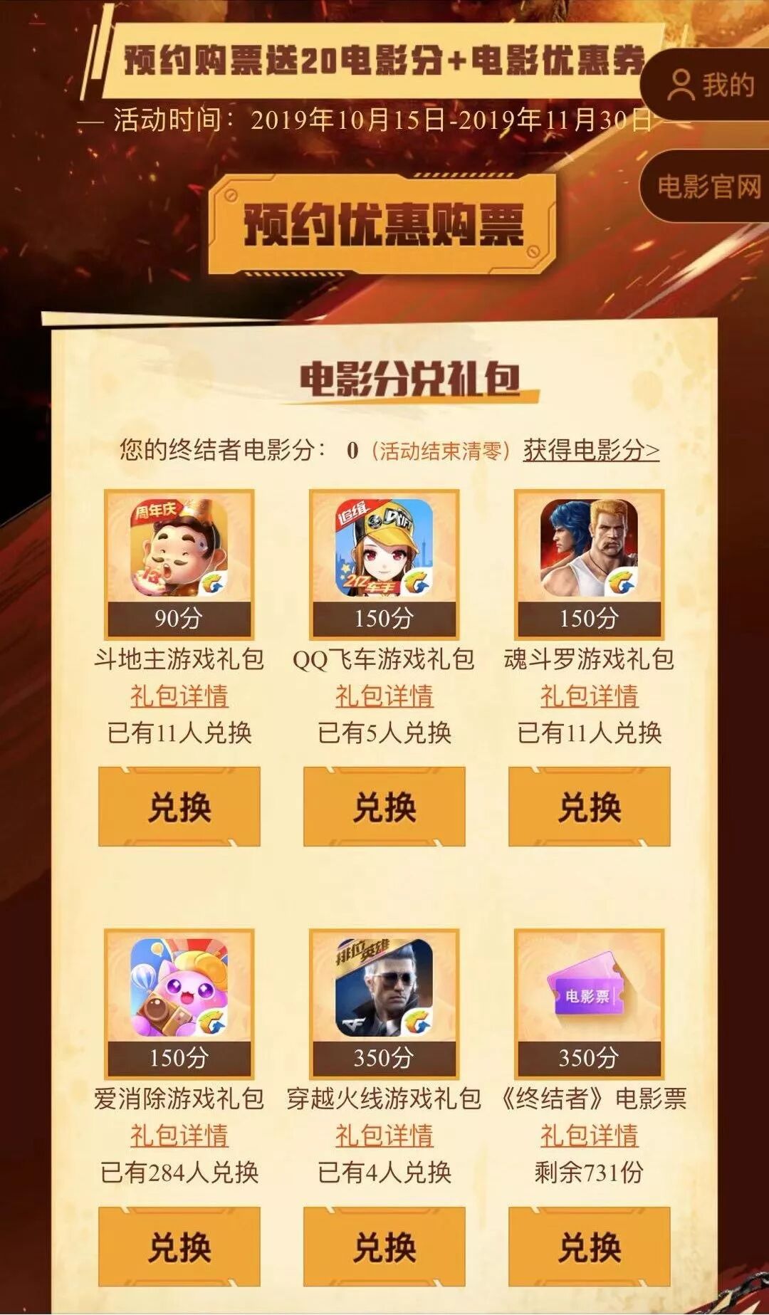 根据提示每完成一个指定任务就可以获得相应电影分电影分累积后可以免费兑换想要的游戏及电影礼包