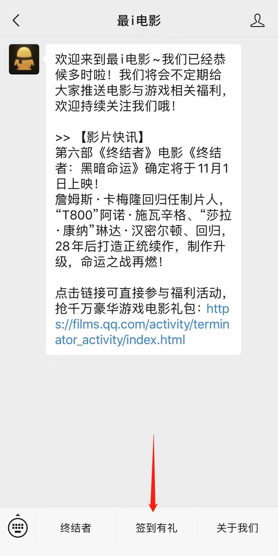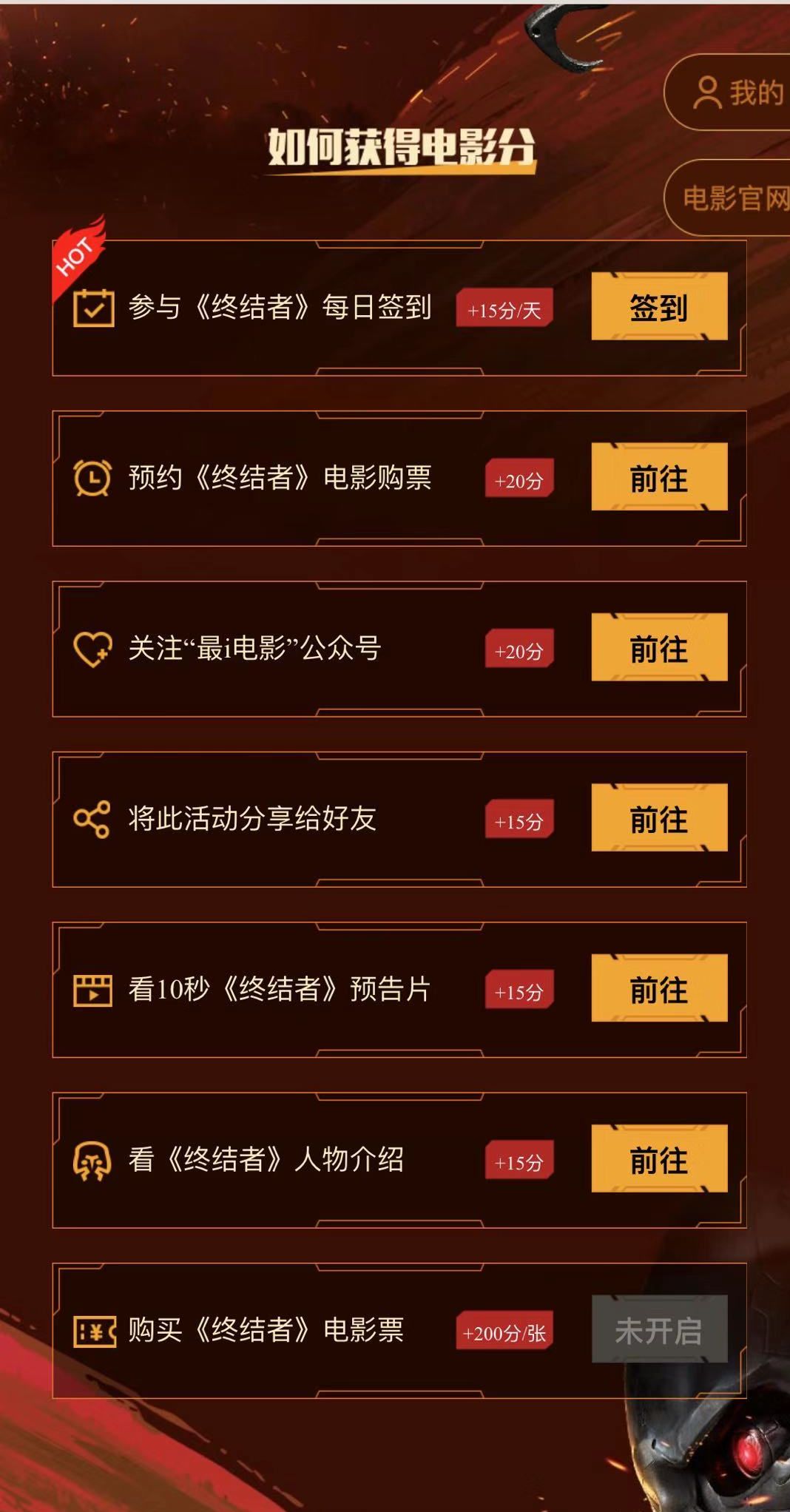 即可进入《终结者》电影分活动