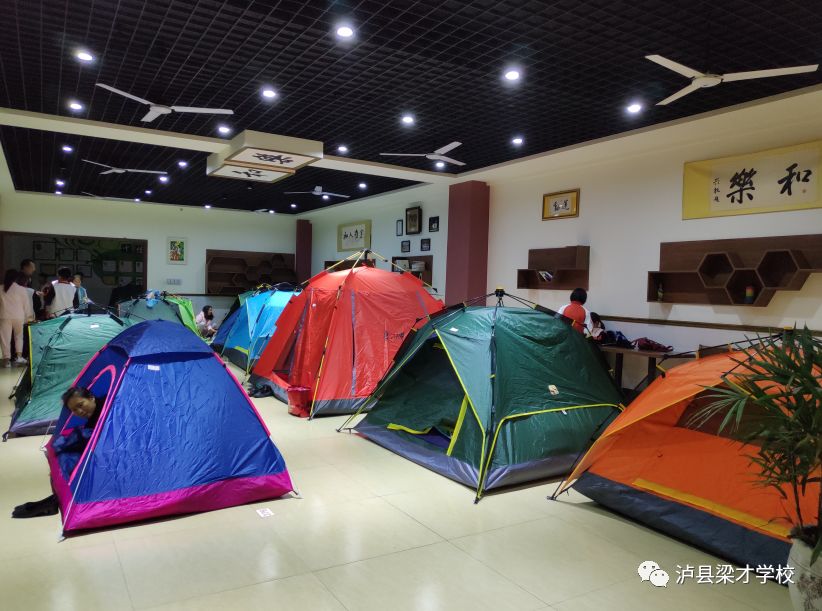 午餐过后,孩子们在老师的带领下来到露营体验区感受了睡帐篷的欢愉,家长们则在体育馆聆听了家庭教育讲座。