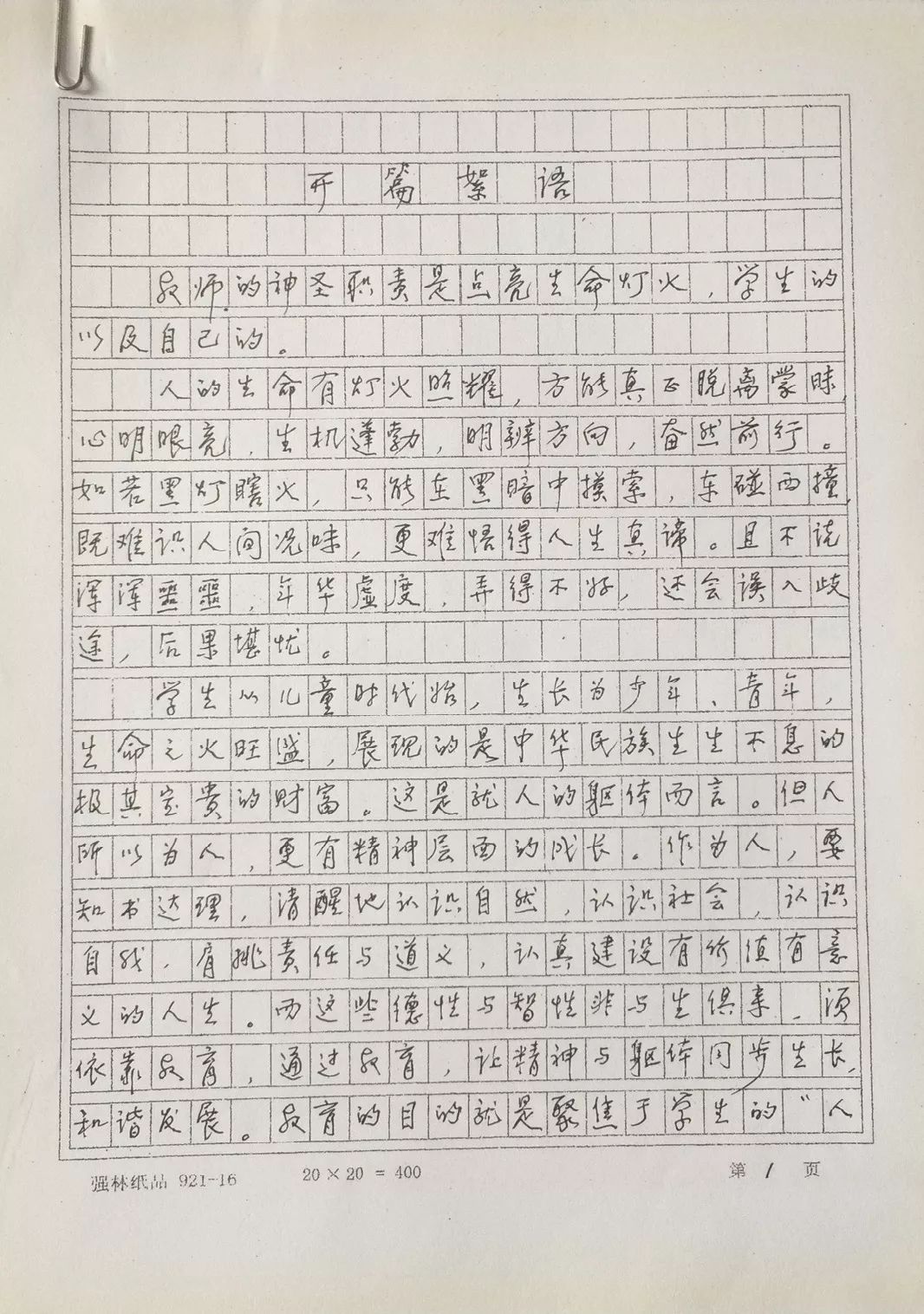 于漪老师为新作特意撰写了《开篇絮语》和4篇《初心浅述》,真情讲述编订本书的宗旨,以及自己在各历史时期不忘教育初心、探索学生成长规律和学科育人规律、不断修为的历程。图为于漪老师为本书写的《开篇絮语》手稿。