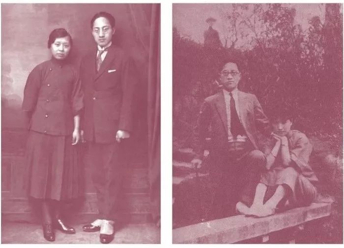 左:徐志摩与张幼仪;右:徐志摩与陆小曼在杭州