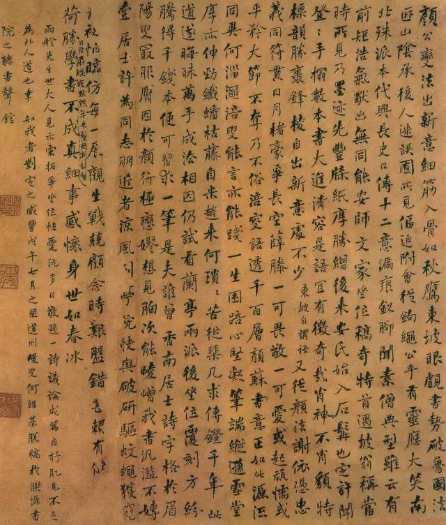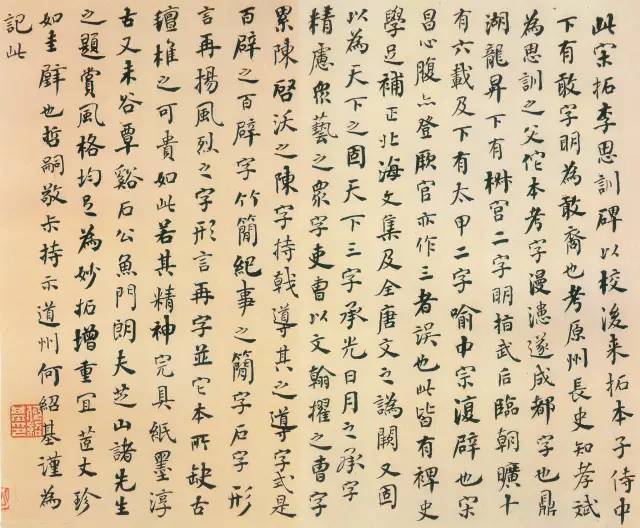 何绍基(1799-1873),字子贞,号东洲居士,晚号蝯叟。道州(今湖南道县)人。曾任四川学政,晚年主持苏州、扬州书局,刊《十三经注疏》,著有《东洲草堂金石跋》、《说文段注校正》等。书法成就甚高。各体书皆熔铸古人,自成一家。行书尤为擅长。