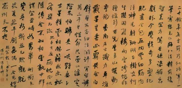 龚贤(1619-1689),字半千、半亩、清凉山人等,祖籍江苏,清初著名书画家。明末战乱流离,避清隐居卖画课徒。擅画山水,风格独具。擅行草书,学米芾,又不拘古法,自成一体。书法为画名所掩,作品多兴致所至,用笔变化丰富,气势夺人。