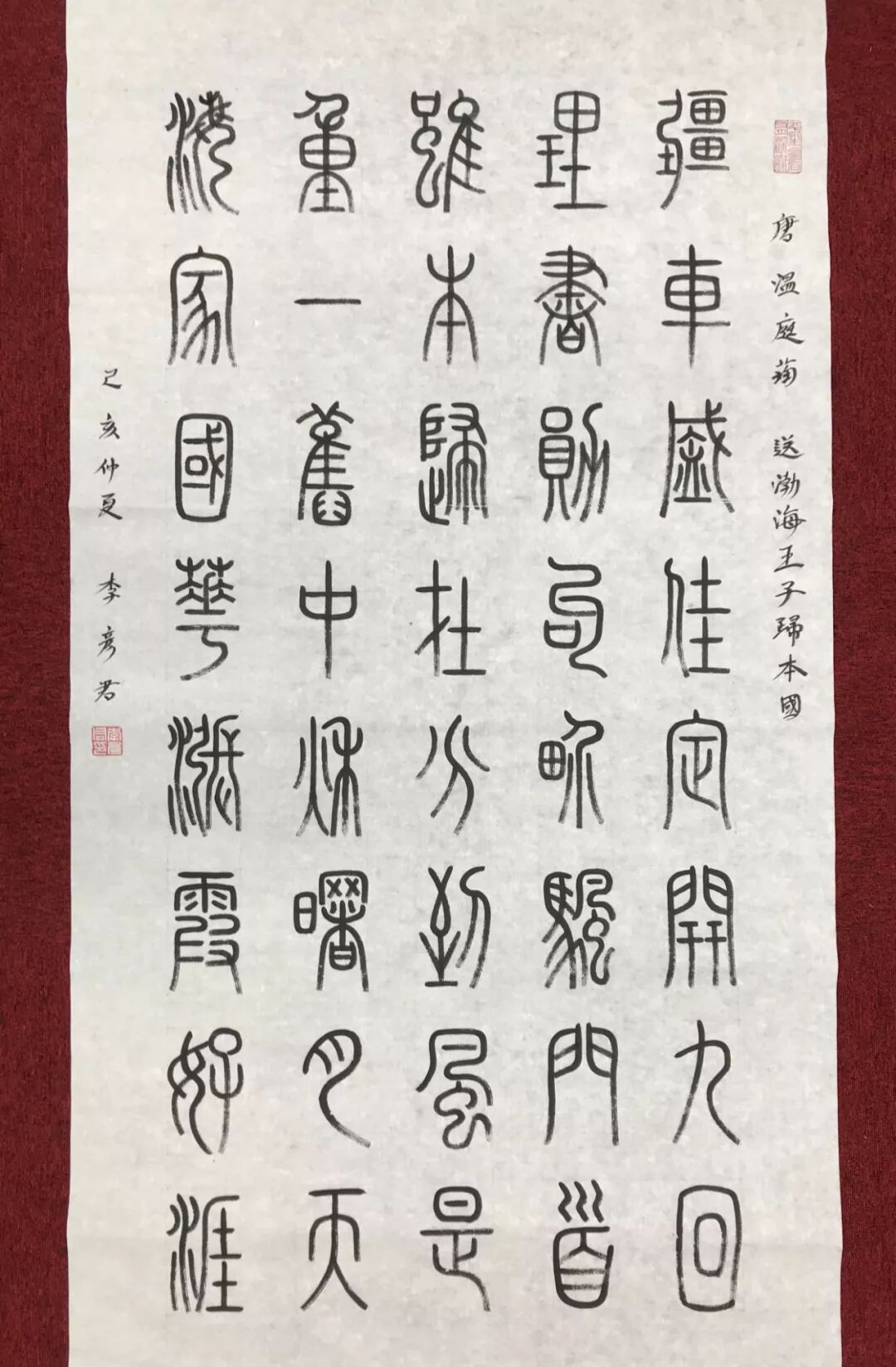 李彦君,字:华阳,号:三夫舍人、少陵渔者、蓬莱山主人。祖居山东蓬莱,黑龙江省巴彦县人,现居北京。金石、考古、文物、鉴定专家、收藏家、文物教育家、擅长甲骨文、金文等字体。毕业于吉林大学考古与博物馆专业,后入中央美术学院研习书法和绘画。从事金石学、国学研究,主攻甲骨文、金文书法、国画,擅长于古文字、书体研究。2005年在大学首创中国文物鉴定专业--北大资源文物学院。2007年被十二家媒体评为“收藏界十大人物”。2019年7月李彦君馆长的甲骨文书法作品《龍門對》入选首都统一战线庆祝新中国成立70周年“与共和国同行”主题艺术作品展。2019年8月李彦君先生受邀参加“庆祝中华人民共和国成立70周年----世界邮票上的中国艺术名家”活动。