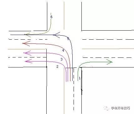 根据线路1,认为紧贴最靠近自己的合法线路为小弯,那就推得线路4应该是4和5之间的优先小弯线路。那就说明大弯应该是线路5,但是我们往往在左转时走线路5会和对面右拐的车线路6冲突。那右转转小弯,左转转大弯这句名言不错了吗?