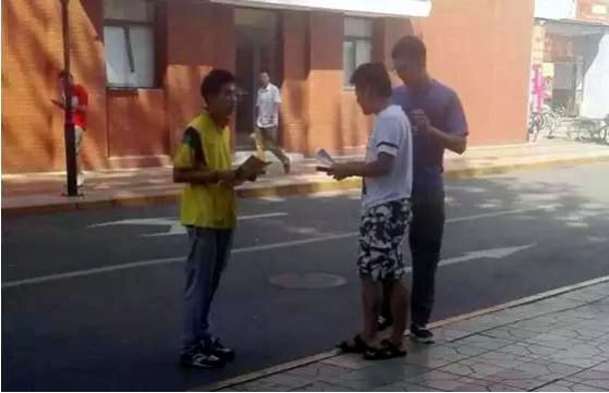 街头的转角处,一个穿着黄马甲的小伙子,正在向路人散发印着“戒色”字样的传单。