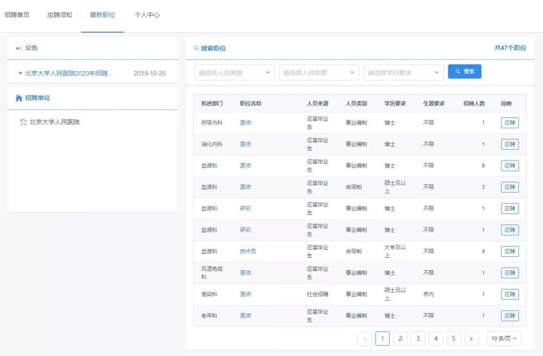 即可进入北京大学人民医院招聘系统,完成本次注册报名等工作。