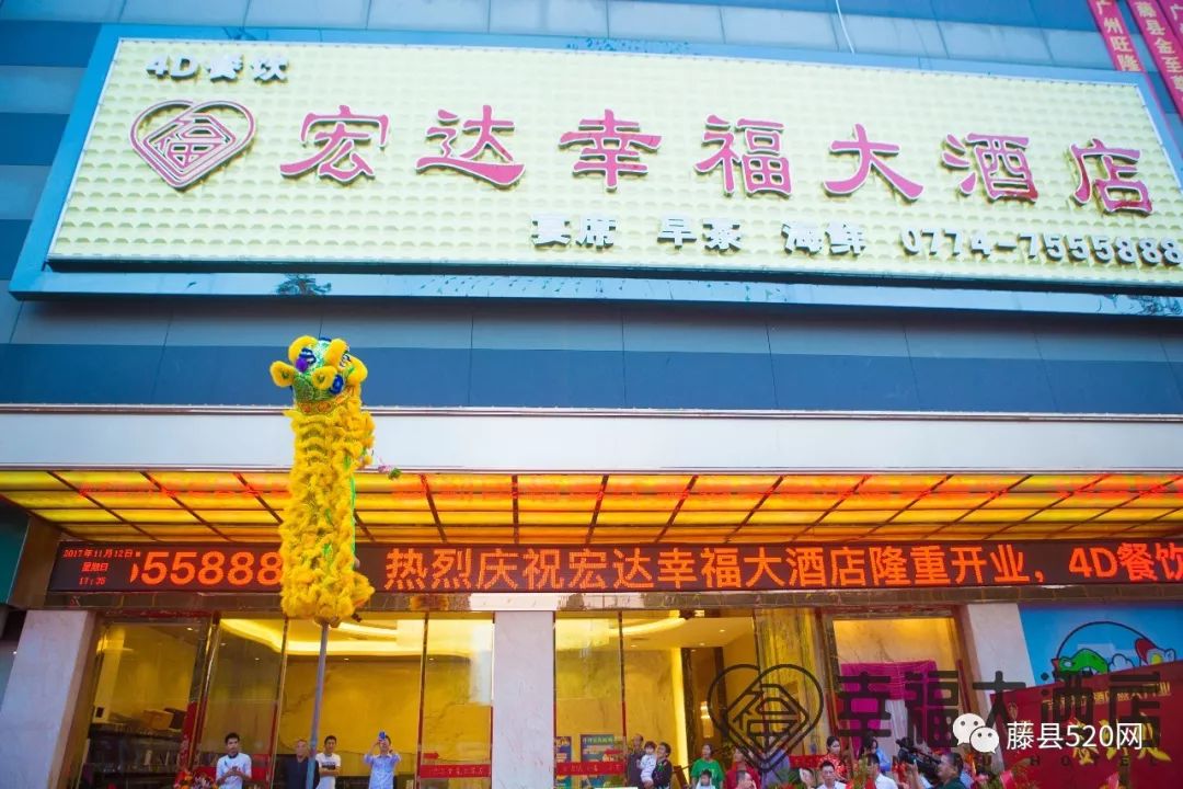 藤县宏达幸福大酒店成立于2017年,地处于藤县杉木冲宏达商住广场。环境优雅的幸福大酒店,是以幸福感为主题的新颖时尚设计、装修高端豪华的新概念型餐饮名店。宏达幸福大酒店是一家集早茶饭市、亲友聚餐、商务宴请、各种宴席于一体星级豪华大酒店。