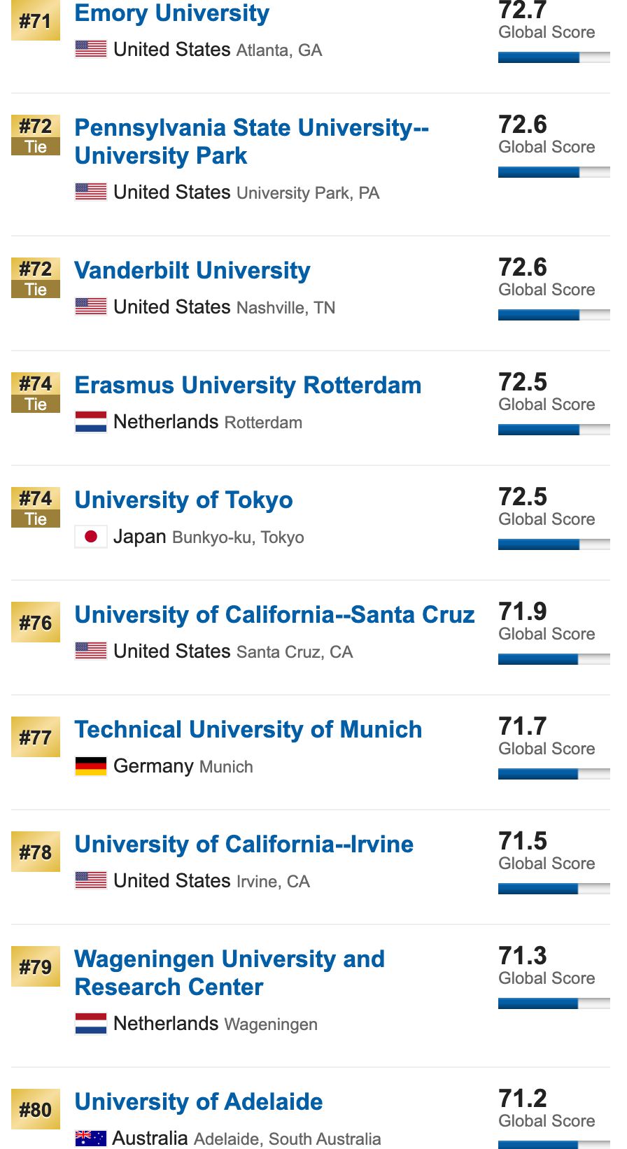 布朗、达特茅斯这种大热藤校,为啥连世界大学top100都没进?华盛顿大学西雅图这种美国排名才60几的大学,为啥反而能进top10?(同样还有伯克利,世界排名第4,美国排名只有22)在QS、THE榜单中名列前茅的UCL、苏黎世联邦理工等名校,为啥却在U.S.News世界大学榜中不见踪影?中国大学不少专业都已经全球第一了,那我还要出国吗?
