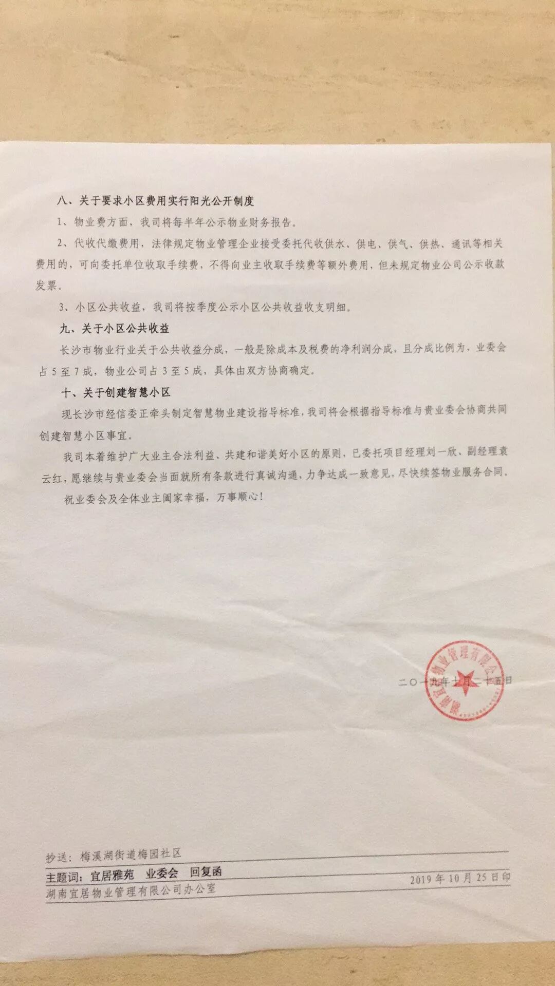 昨日小区前期物业——湖南宜居物业管理有限公司针对业委会之前提出的物业续聘洽谈框架方案已书面复函,该复函宜居物业已张贴至各栋个单元1楼电梯前室,请大家知悉!