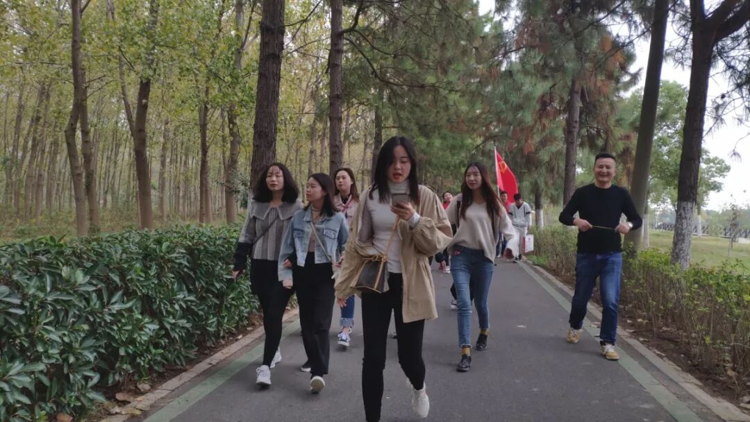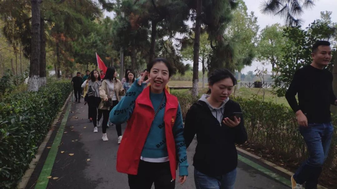 大家一路欢声笑语一起游赏湿地公园,增加了同事之间的交流。