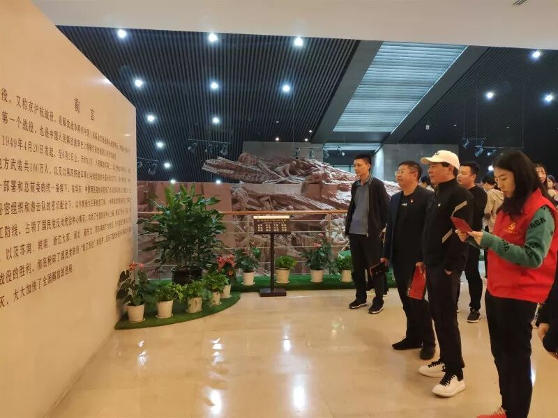 随后,大家前往位于合肥滨湖新区的渡江战役纪念馆,缅怀革命先烈,感受红色文化,传承革命精神,深入开展 “不忘初心、牢记使命”主题教育。全体党员在讲解员的带领下参观了渡江战役纪念馆。通过讲解员的讲解,大家了解到渡江战役是中国人民解放军实施战略追击的第一个战役,也是向全国进军作战的伟大起点,历时42天,共歼灭国民党军队43万余人。解放了国民党统治中心以及苏南、皖南、浙江、闽北、鄂东、赣东北等广大地区,为人民解放军迅速向全国进军,开辟了胜利的道路。