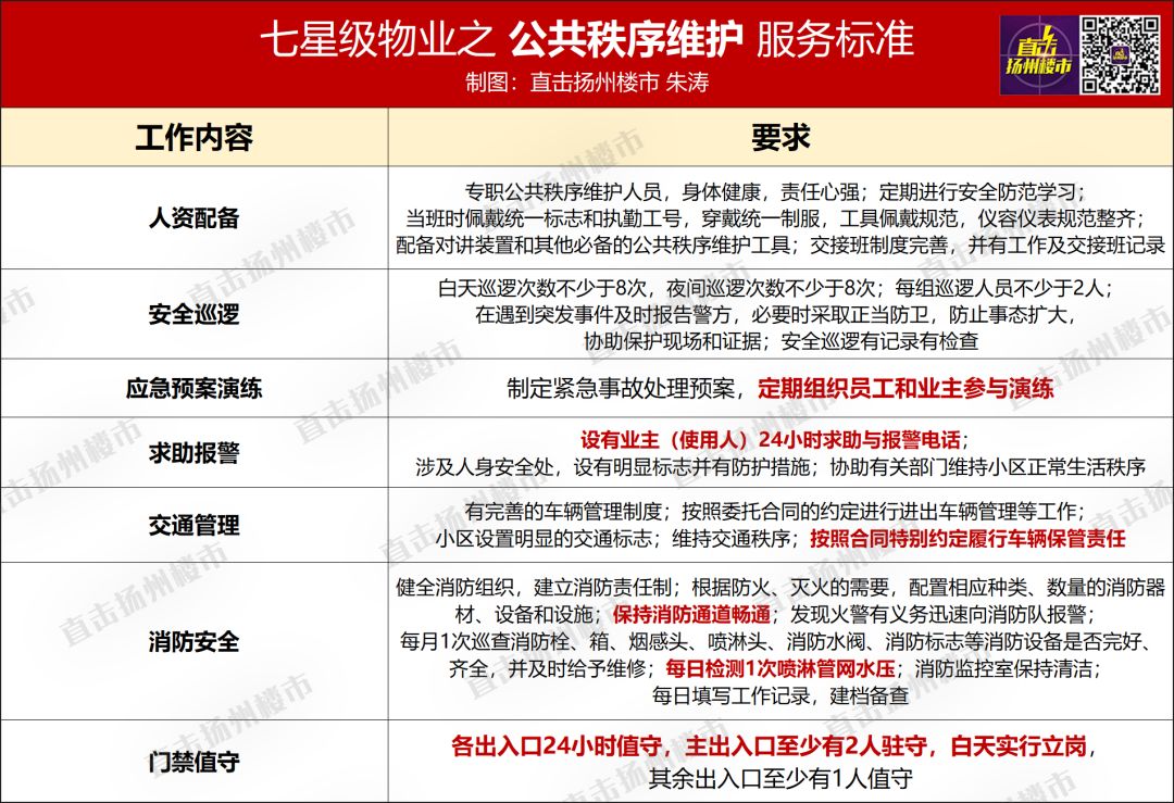 今天,我就对照市政府公布的《扬州市普通住宅物业服务等级标准》,重点聊聊七星级物业服务标准,为扬州老百姓们提供参考。