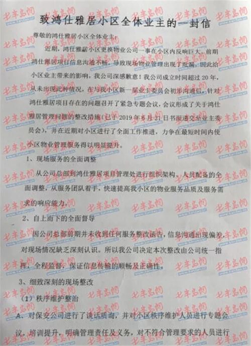 《致鸿仕雅居全体业主的一封信》(来源:广厦物业)
