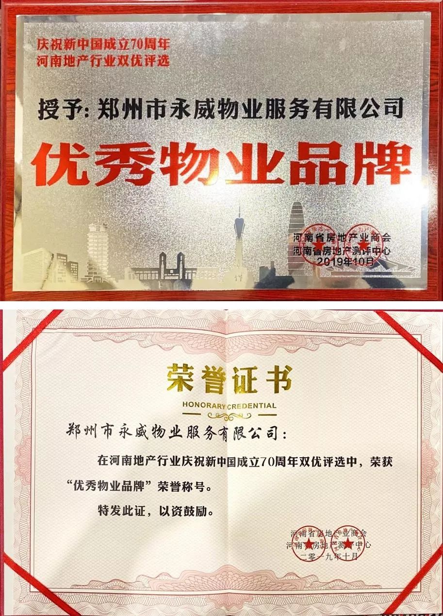 此次评选由河南省房地产业商会主办,聚集了河南省一大批优秀的地产企业。评选历时一个月,评选组委会从多个维度出发,对参选企业进行了公平、公开、公正的评选,最终评选出对河南省房地产行业发展做出了突出贡献的企业,此次永威物业在河南地产行业庆祝新中国成立70周年双优评选中荣膺“优秀物业品牌”奖,永威物业的品牌美誉度得到了认可及肯定,是对我们的赞誉和鼓励。砥砺新时代,永威物业将继续秉持“真诚、尽心、精细、超越”的服务理念,以对服务细节的精心雕琢,对服务品质的极致追求,成就极致物业服务品牌典范!