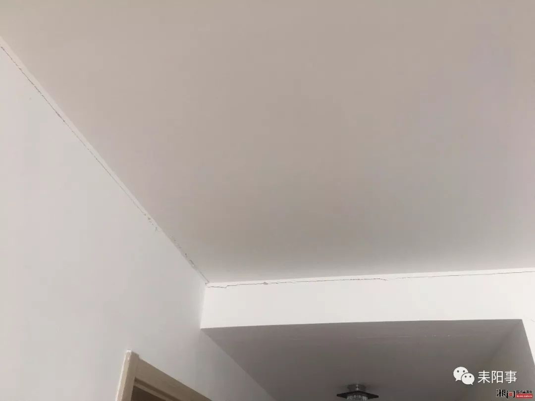 (二)关于房屋开裂、沉降等问题。经现场初步勘查,一是由于在建筑抹灰时两种材料交接处未挂钢丝网形成的裂缝,属内装修问题。二是业主装修吊顶时,木板与木板间和木板与墙体间的缝隙未粘贴抗裂网格布所致,不属主体结构问题。