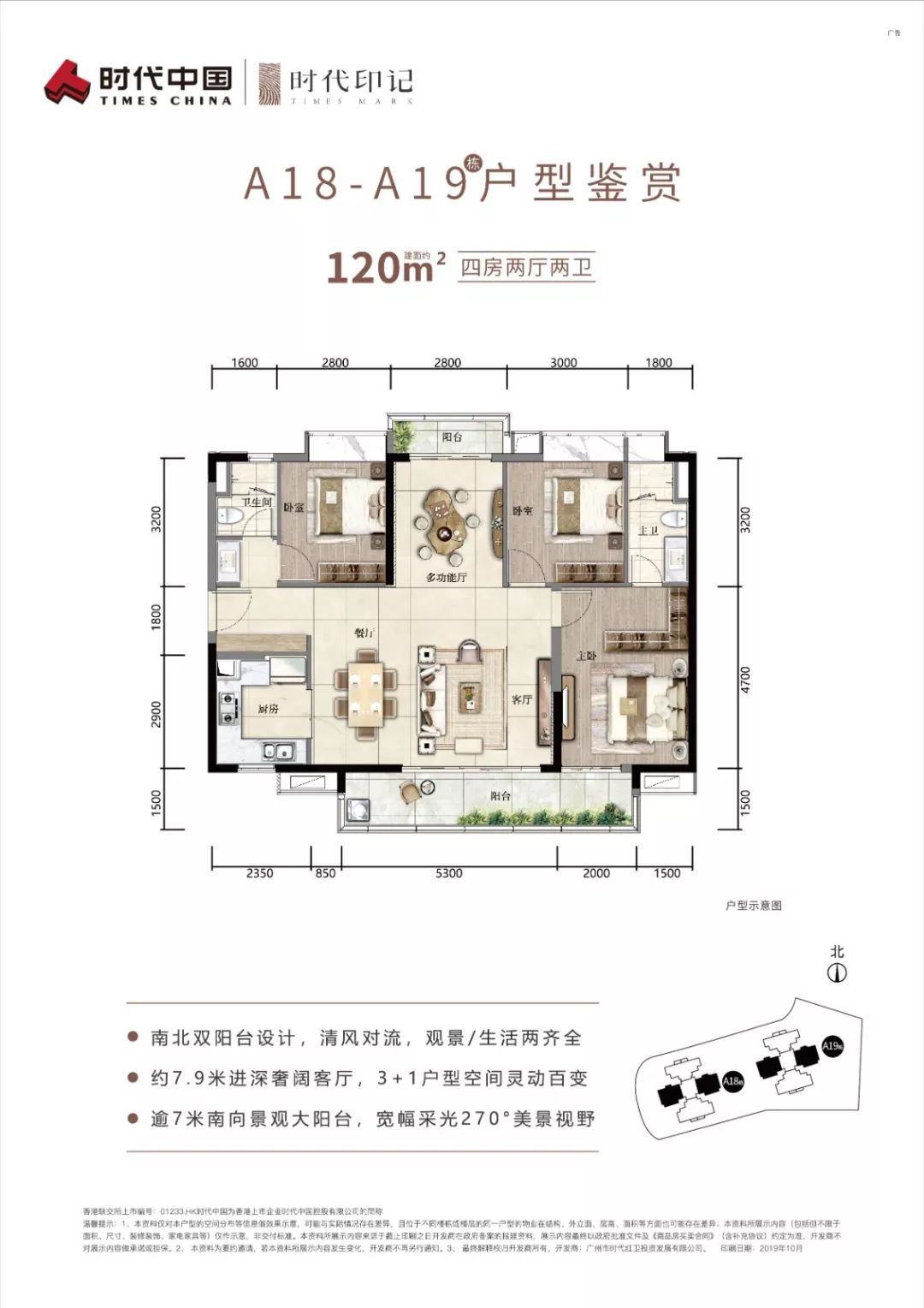 至于120四房,就更阔绰了。南北双阳台、7.9米宽豪华阳台,贯通客厅主卧,270°采光面,景观视野无敌。