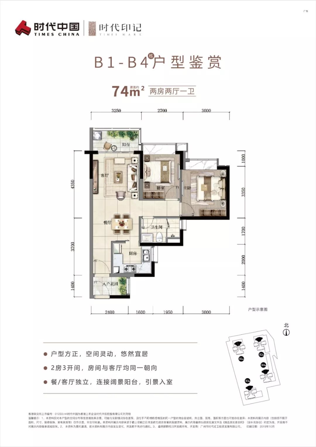即使是74方两房,亦有大入户花园、大阳台,并做到了两房三开间。