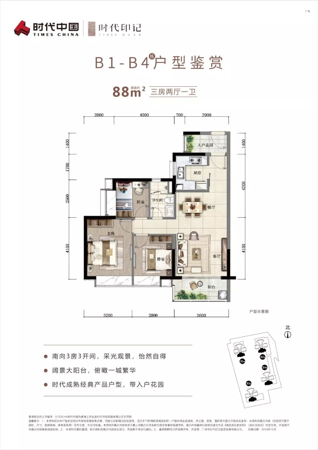 在时代印记,时代中国拿出了74-120平方米的两房至四房。