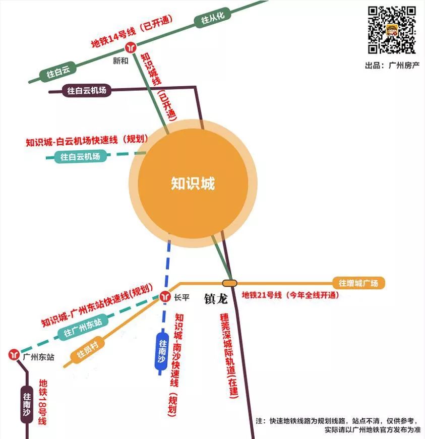 要知道,整个知识城规划了8条轨道交通+5条高速公路+7条城市快速。