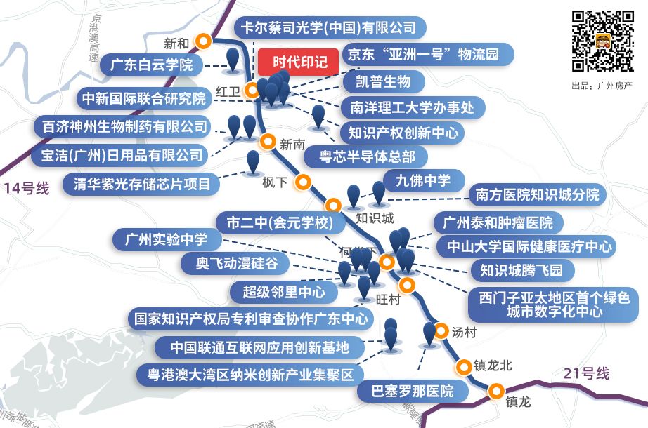那么,时代印记在哪里呢?其位于知识城起步区北区,也就是粤芯半导体、百济神州、中国移动等优质巨头企业的精华地带。
