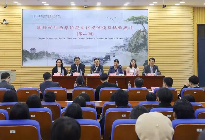 我校教师代表张磊作课程总结,并期待即将开启的赴泰汉语教学之旅。此次文化交流期间,学校为泰方学生量身打造了丰富的学习内容,包括汉语基础入门、中国传统文化学习,参观芜湖博物馆、品尝安徽地方美食、手工艺产品制作、赴黄山进行实地研学、走进古老徽州村落、欣赏当代徽州剧目等,帮助他们深入感受中华传统文化的魅力。