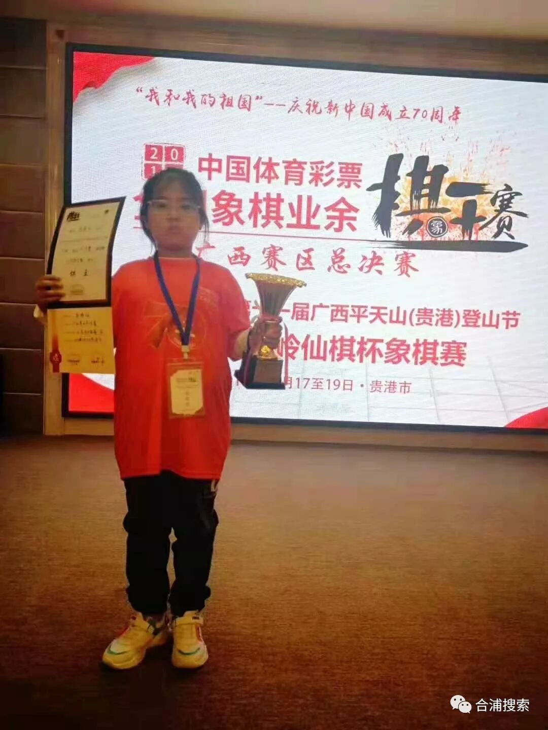 10月19日,2019年全国象棋业余棋王赛广西赛区总决赛在贵港市落幕,来自合浦县西场镇中心小学学生苏梓涵经过层层角逐,最终战胜对手成功卫冕小学女子组冠军。