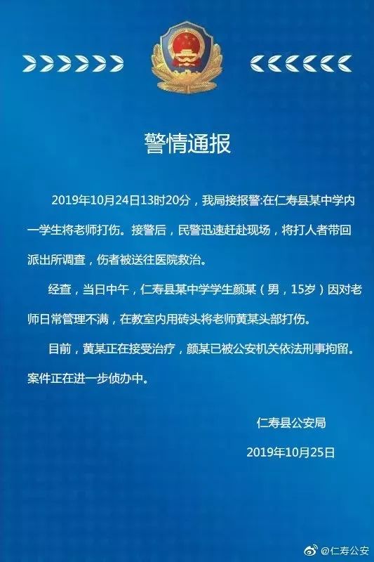 “这名学生的家长是在仁寿经商的,平时他都不管,也管不到。学生被公安带走了,还说,很恨这个老师,就要把这个老师弄死。”