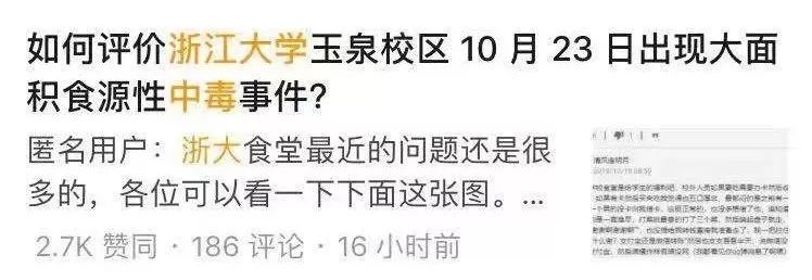 2019年10月23日,浙大校园发生食物中毒事件,“当晚校医院几乎都是半夜腹泻、呕吐的学生”,校内论坛“十大”热帖都在讨论事件相关情况,而后校内个别机关迅速采取了删帖、精准约谈学生等举措,控制舆情。无奈,浙大学生只好转战校外论坛,终于使事件得到了社会关注。
