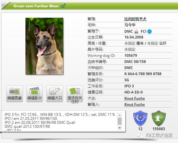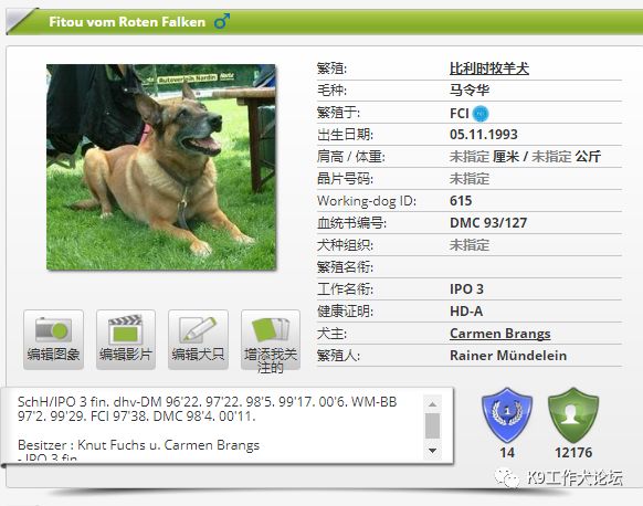 “vom roten Falken”犬舍(根据working dog上的犬只命名规则,一般vom、der、von这些和后面的后缀都是犬舍名字,前缀是犬只名,也有少数的犬舍名字写在全面)的主理人是Rainer Mündelein,他离福克斯的父母家只有2英里。然后福克斯就跟着Ranier学训犬,Rainer教他训犬方面的知识。
