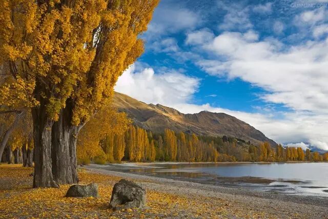 从费朗兹约瑟夫冰川返回基督城沿途路过几个湖,秋色非常美,停车拍摄。全天路程273公里,车程约4.5小时。