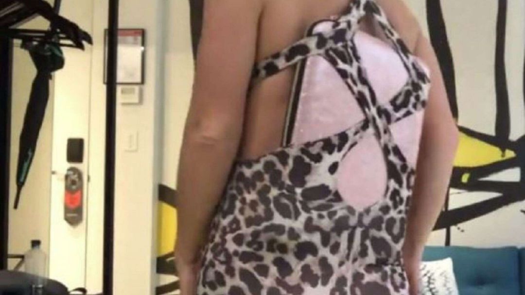 Wearing a lycra leotard, Andrews placed a laptop down her back and put the charger wrapped in clothing in front of her stomach to replicate a baby bump. She then dressed in jeans, a sweater and a jacket.