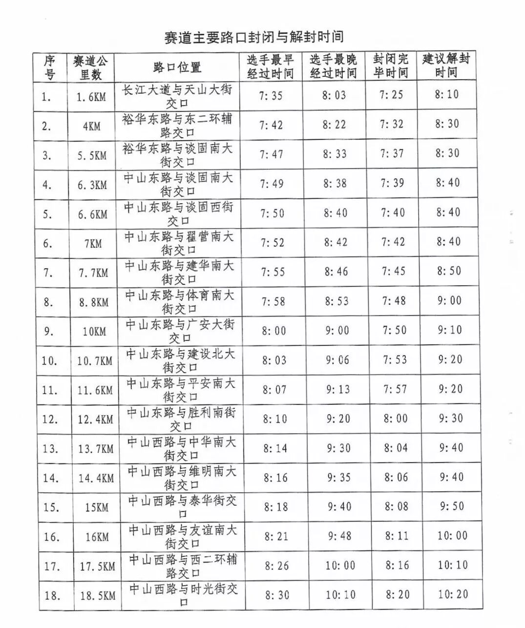 马拉松赛道主要路口封闭和解封时间公布,明天(10月27日)有出行计划的朋友速看↓