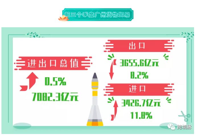 此外,前三季度广州对“一带一路”沿线国家进出口1654.1亿元,同比下降5.2%。