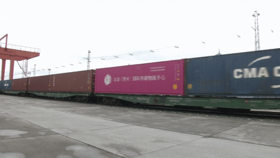 在绥芬河市铁路车站集装箱货场,一辆装载着124个标准集装箱的火车正在缓缓驶出,集装箱中的货物主要以板材为主,通过哈绥俄亚陆海联运班列,从绥芬河口岸出发,经过俄罗斯的远东港口群,发往到广州等地,预计最快15天左右就可以到达目的地。