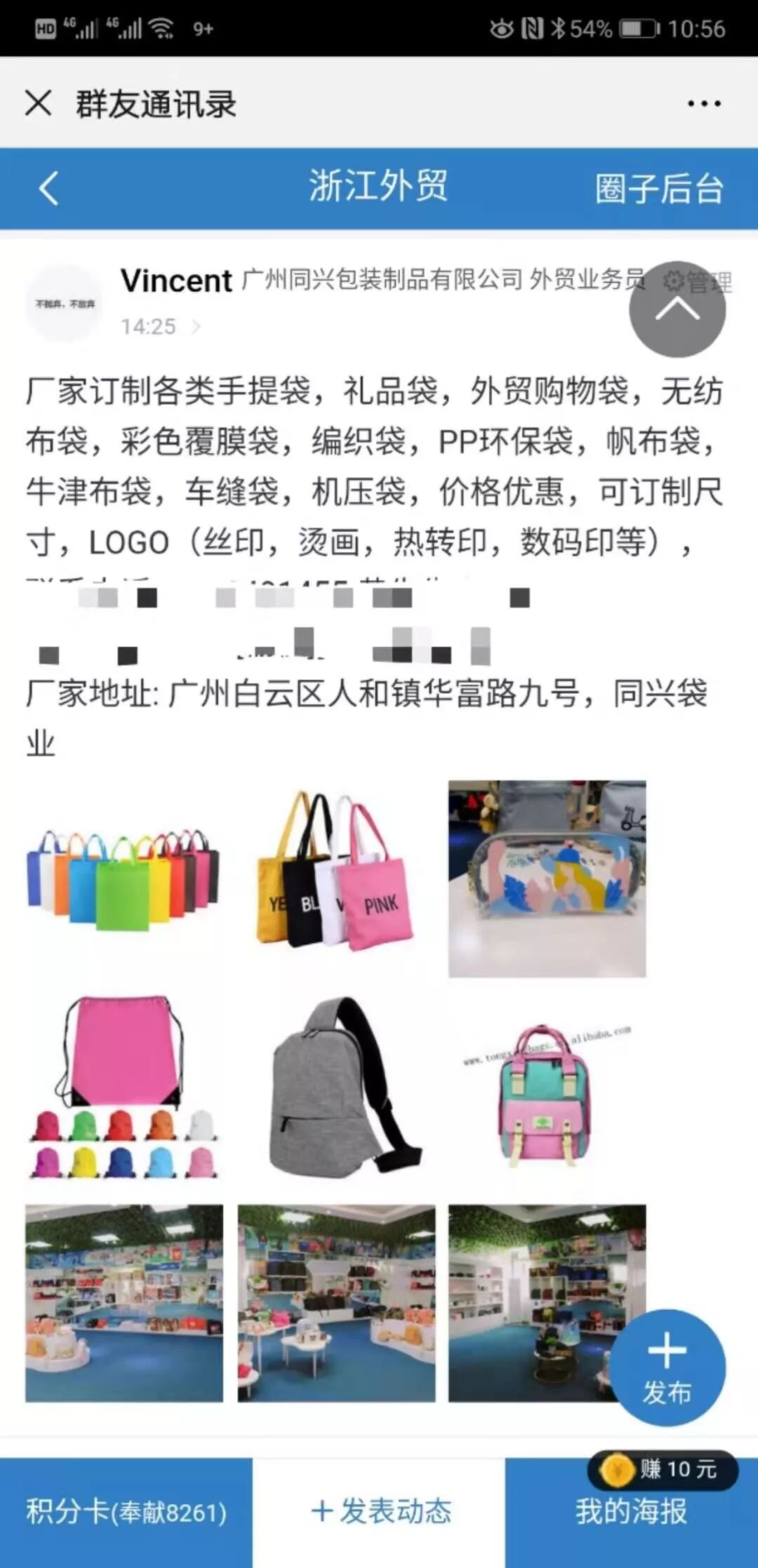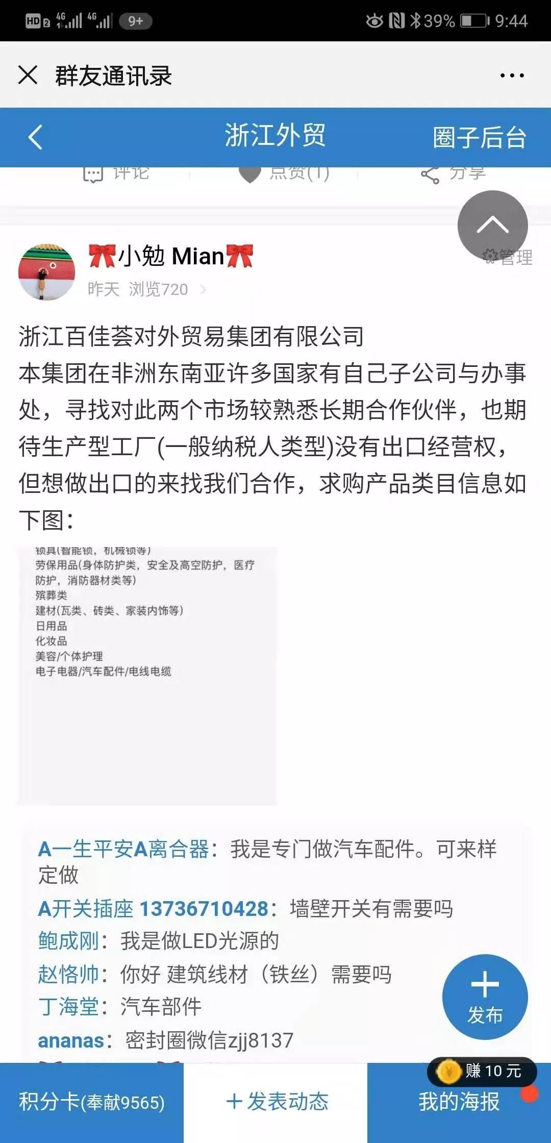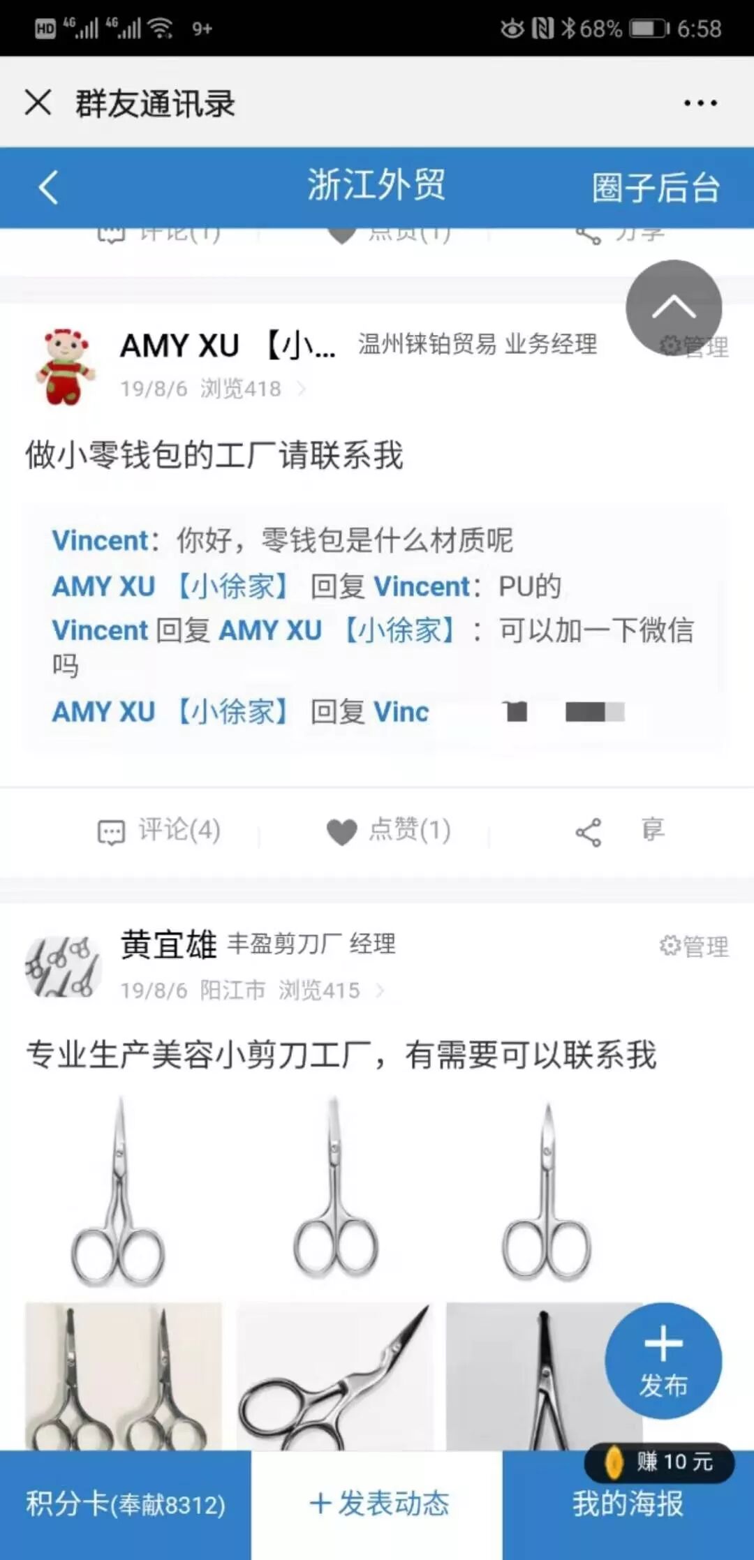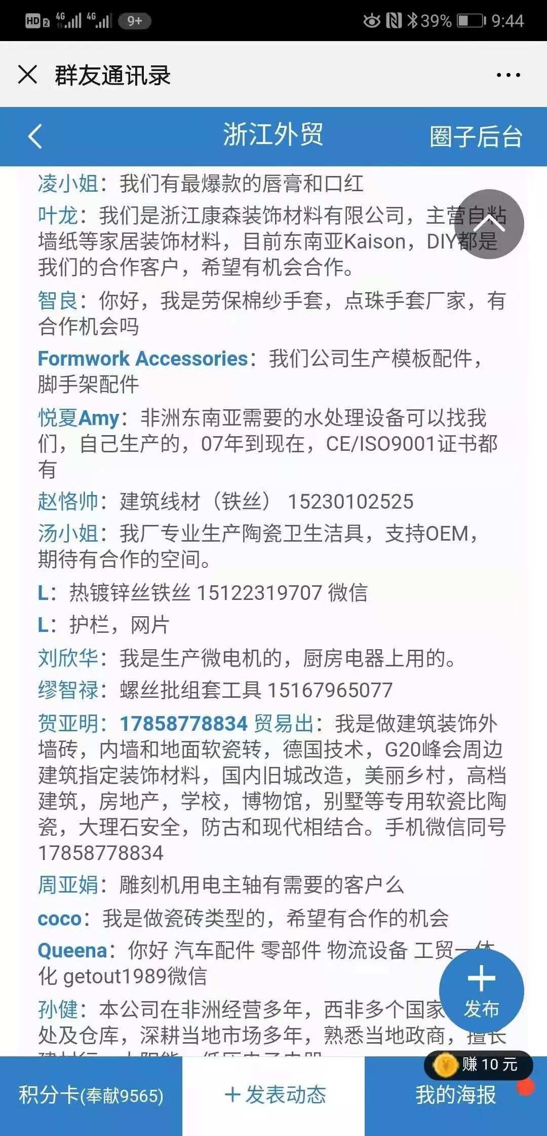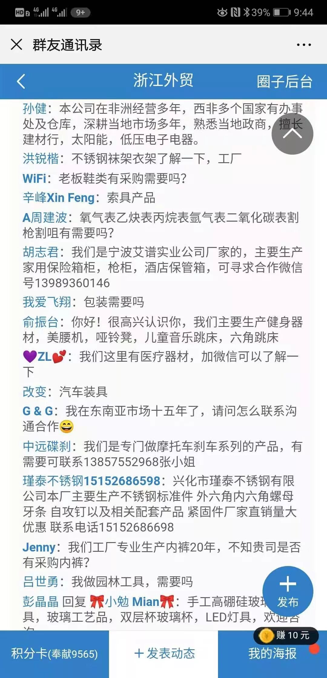 外贸公司找产品,工厂找合作伙伴,可在10000多外贸人的“通讯录”里发布信息,大家都可以看到。文字+图片,完整详细的信息会被推荐给全体人员!