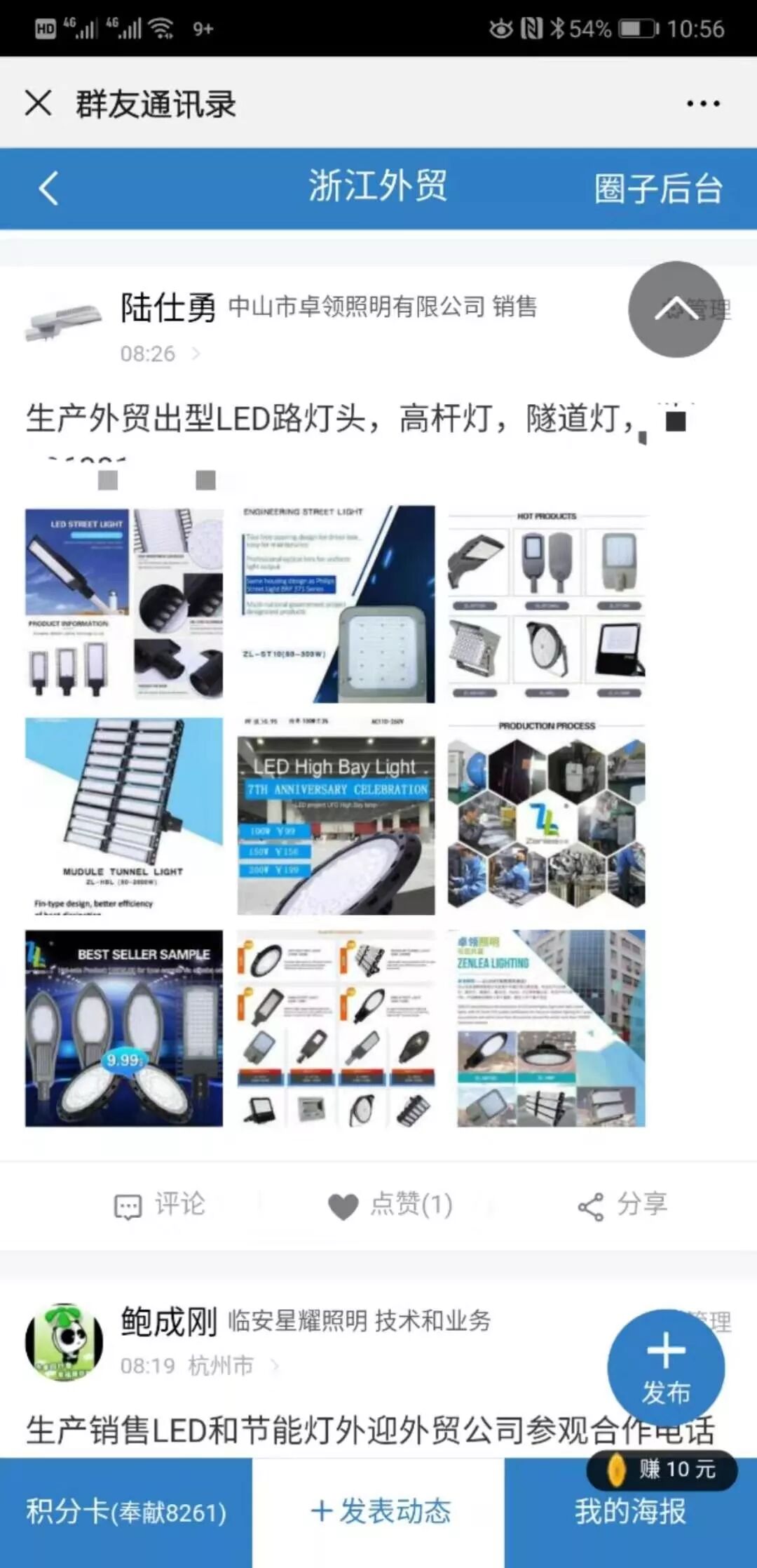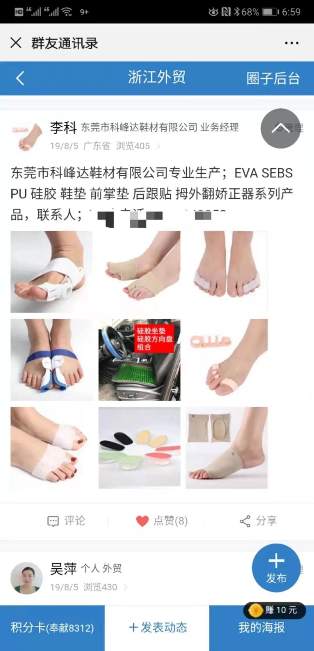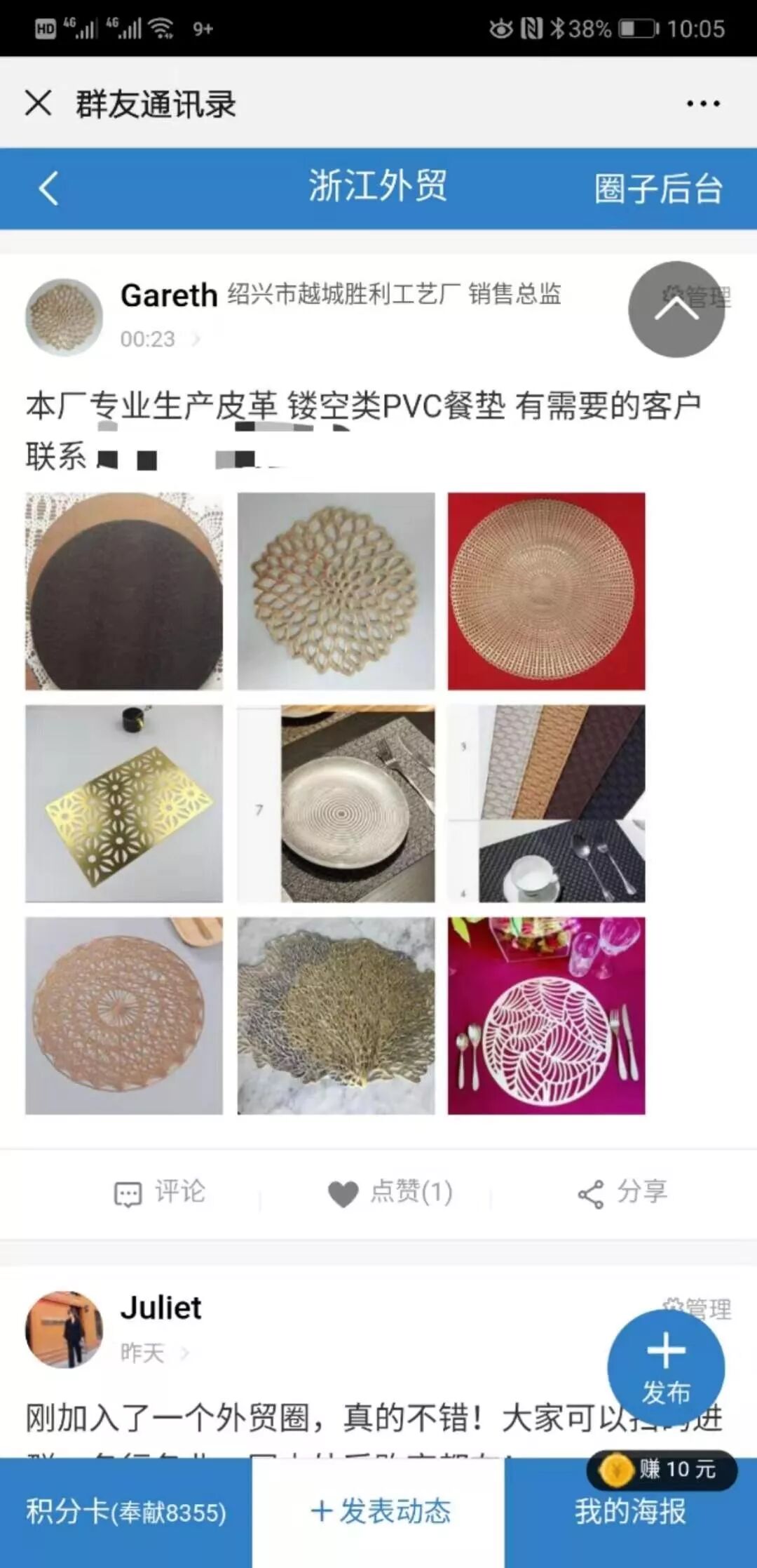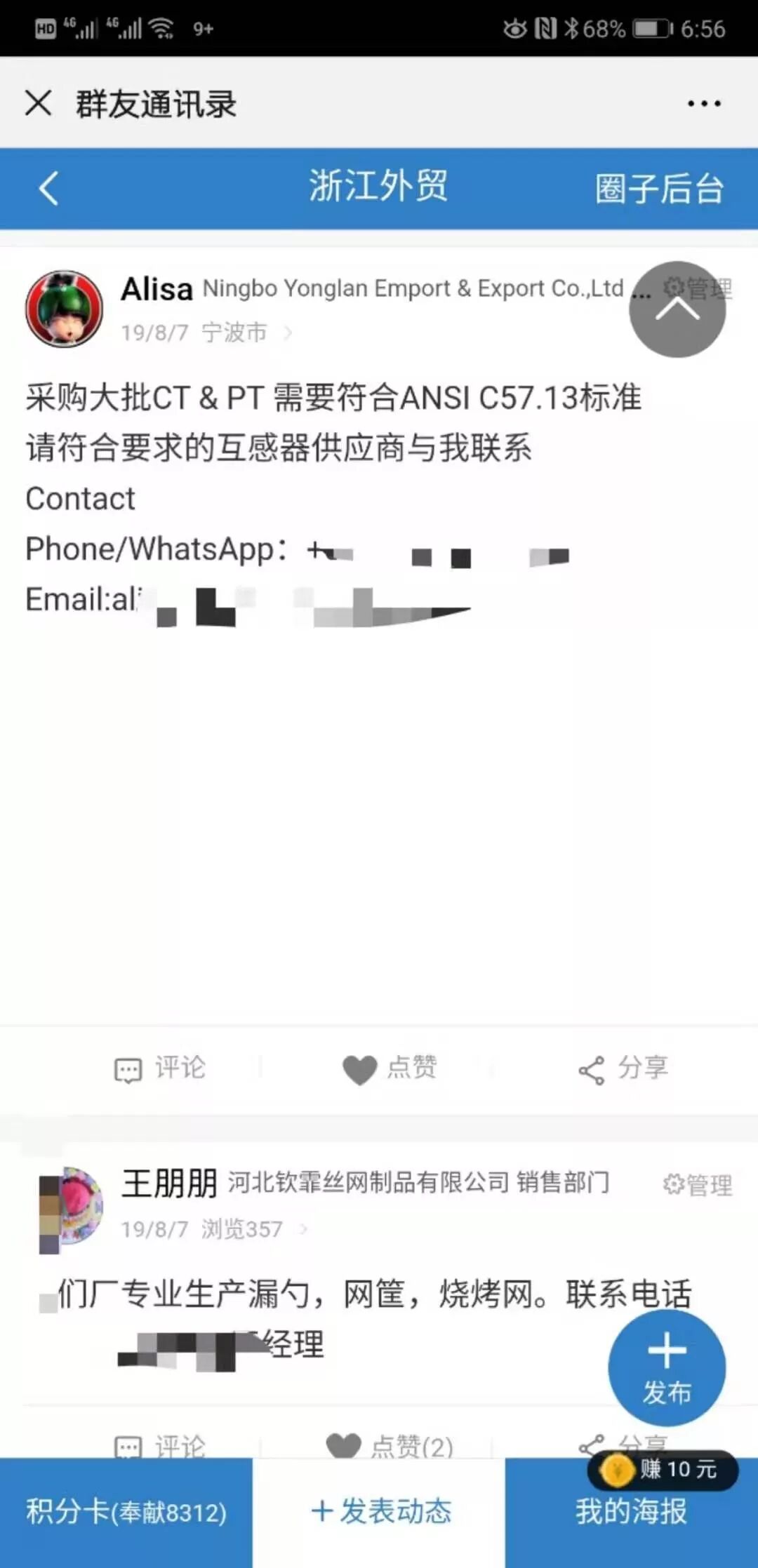 外贸公司找产品,工厂找合作伙伴,可在10000多外贸人的“通讯录”里发布信息,大家都可以看到。文字+图片,完整详细的信息会被推荐给全体人员!