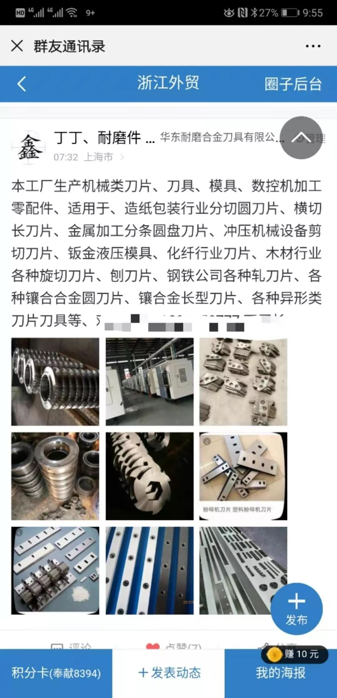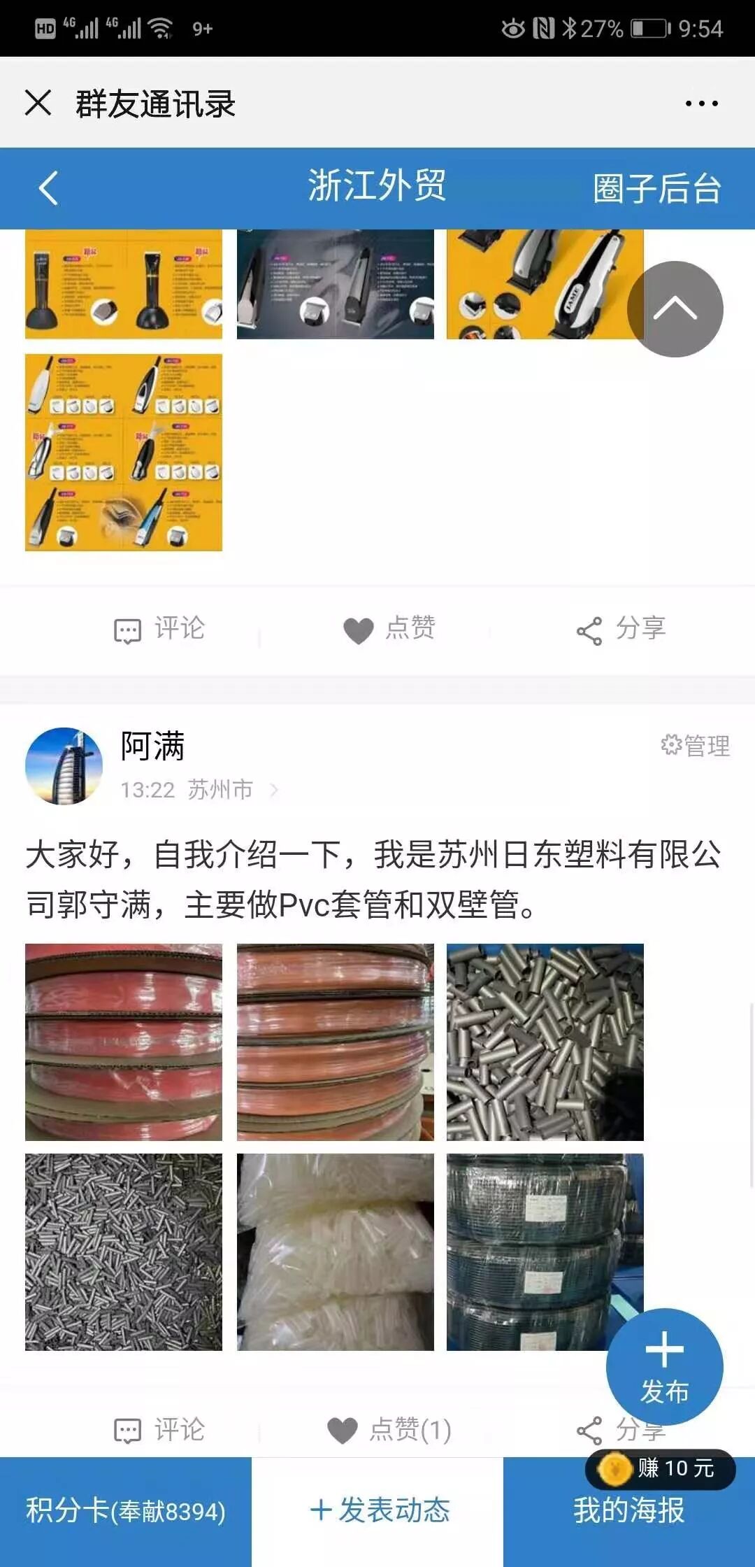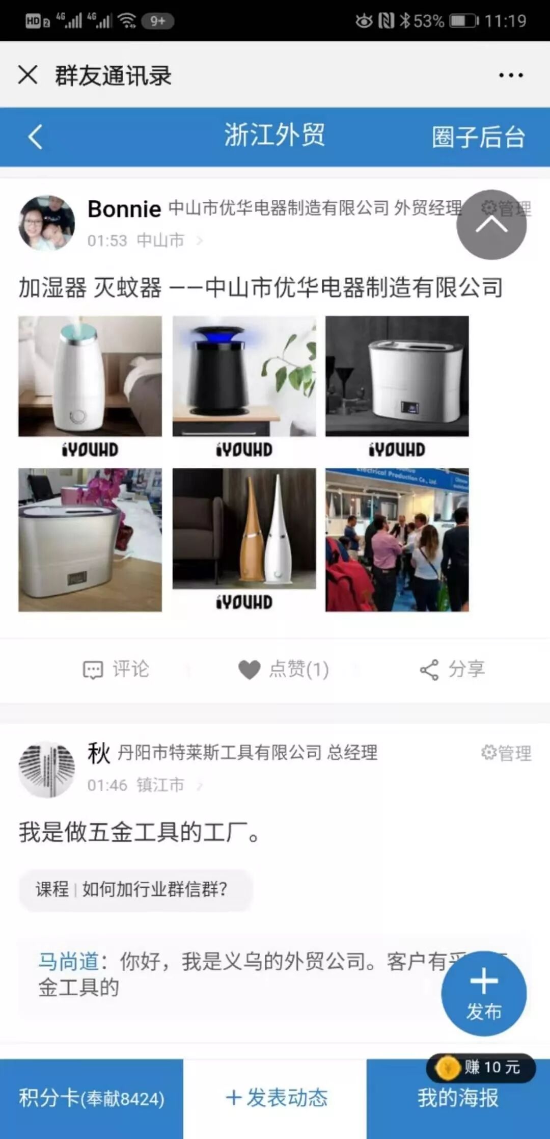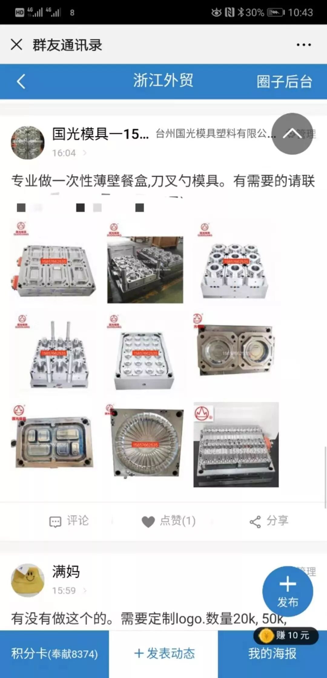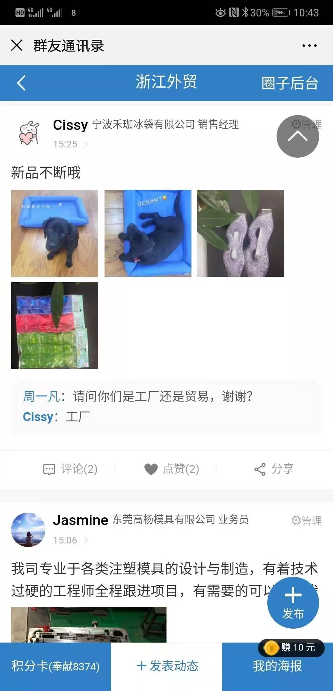 外贸公司找产品,工厂找合作伙伴,可在10000多外贸人的“通讯录”里发布信息,大家都可以看到。文字+图片,完整详细的信息会被推荐给全体人员!