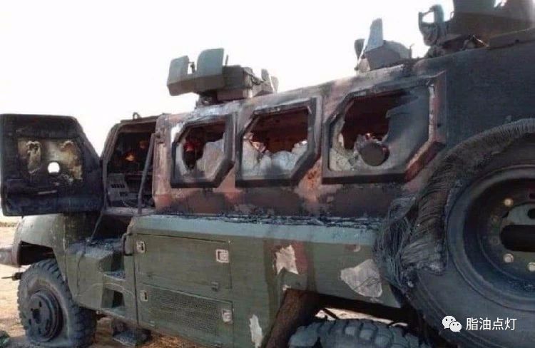 但是,整个车窗,有很多弹孔,同时,这辆装甲车被焚烧过。机枪也被卸走了。实际上,虽然大脚怪装甲车可以防14-16公斤级别的地雷。但是,现在的中东和非洲武装组织,经常使用更大威力的爆炸物。