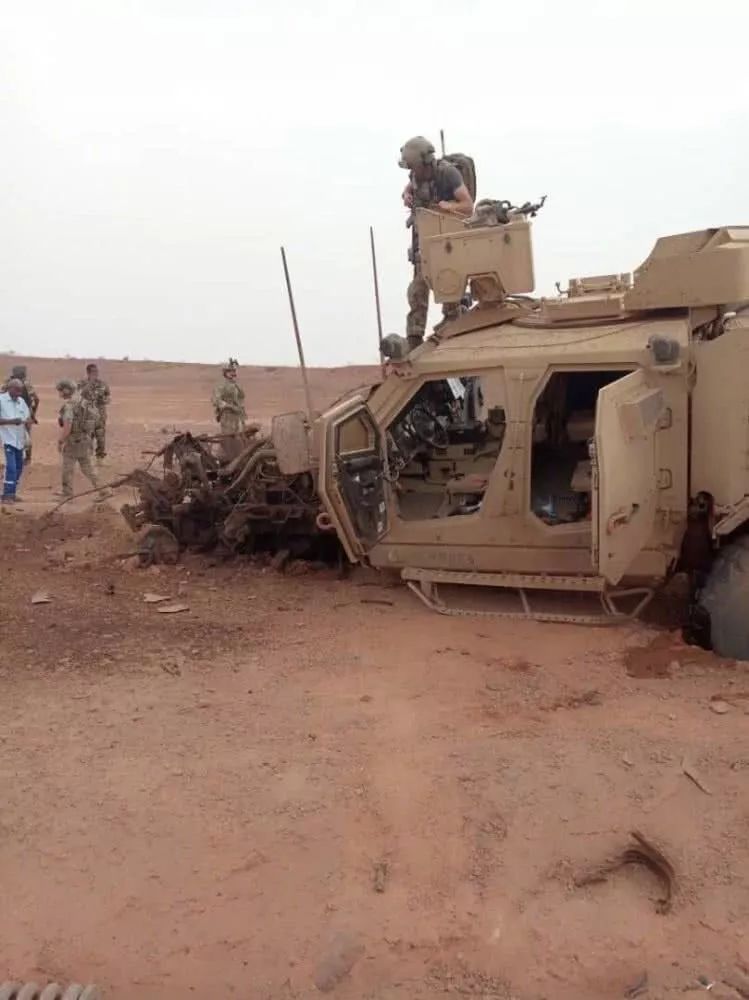 当然,外国名牌防雷车在尼日利亚一样被打烂。画面上是美军巡逻队的一辆M-ATV防雷反伏击车,在尼日利亚被伏击后的惨状,前置发动机舱和前轮基本全毁,顶置武器站也被冲击波损坏。