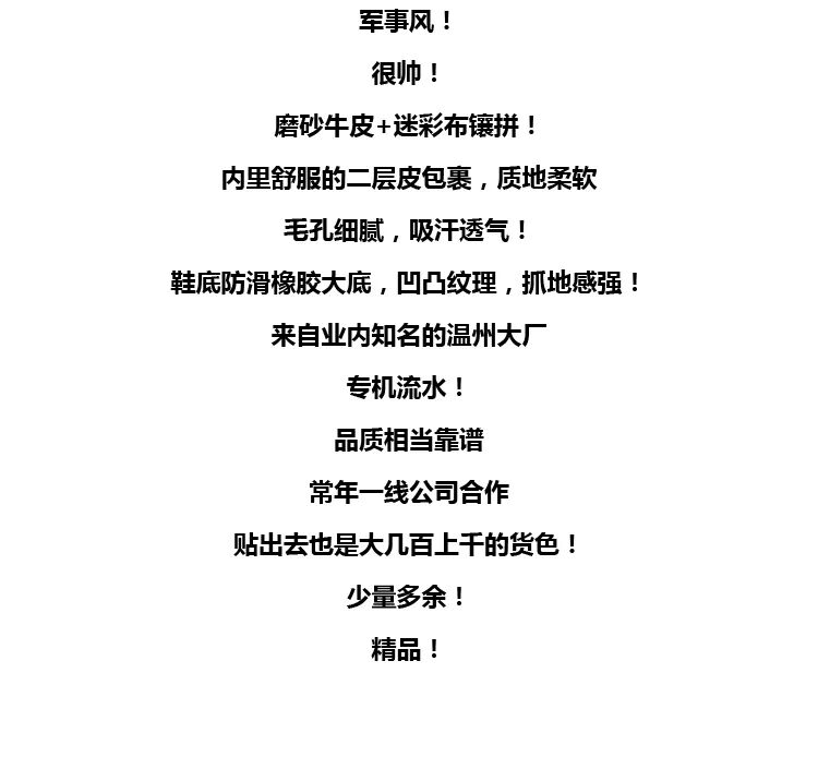 硬朗军事风!磨砂牛皮!外贸男鞋工厂剪标尾货高帮鞋工装鞋战术靴