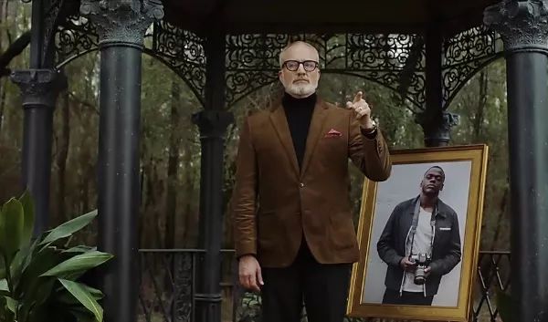 聚会开始时,华特拥抱所有的来客,常理判断仆人怎么会拥抱客人呢,这在种族不平等区域不正常啊,但事实是华特就是爷爷啊。看完后细思处处是铺垫,前后呼应。克罗斯的朋友罗德在收到了克罗斯发过来海华斯的照片后确定克罗斯会有危险,但这时电话却断了,在之前排到罗德在家的同时,广播里播着美国人对衰老的恐慌,这也一定程度上照应了主题内容——小镇居民对年老的排斥,想法骗来或掳来黑人的身体好让他们的寿命继续延续。